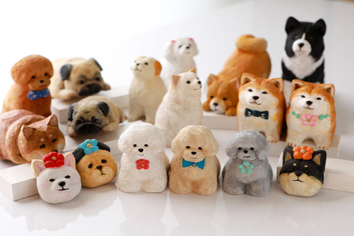 ●目が合うとほっこりとした気分になれるような木彫りのわんちゃんたちをお届けします。