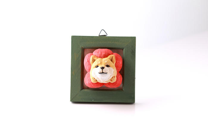 - 7.5㎝×7.5㎝サイズの額に柴犬を入れてお届けします。