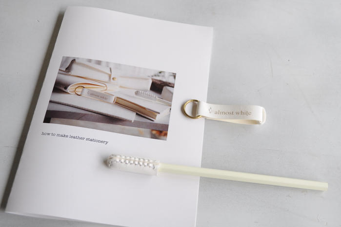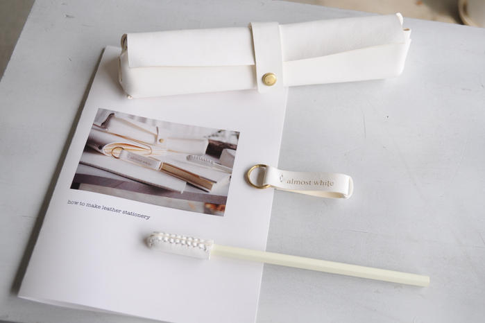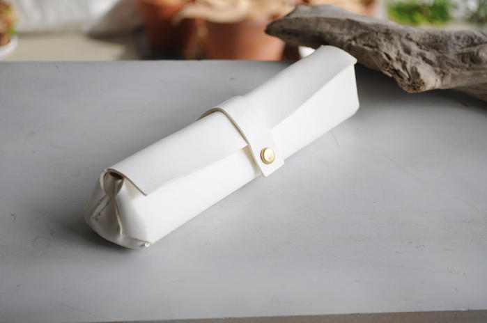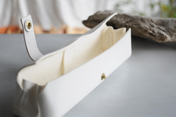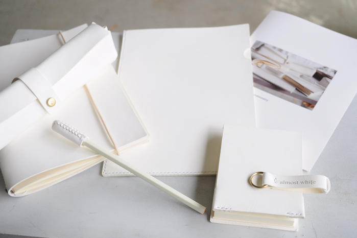 - 白い革を使って文房具を作りたいと思っています。白い革は合成タンニンでなめされた真っ白なもの。ゆっくりと経年変化してクリーム色になっていく過程をお楽しみいただきたいと思っています。