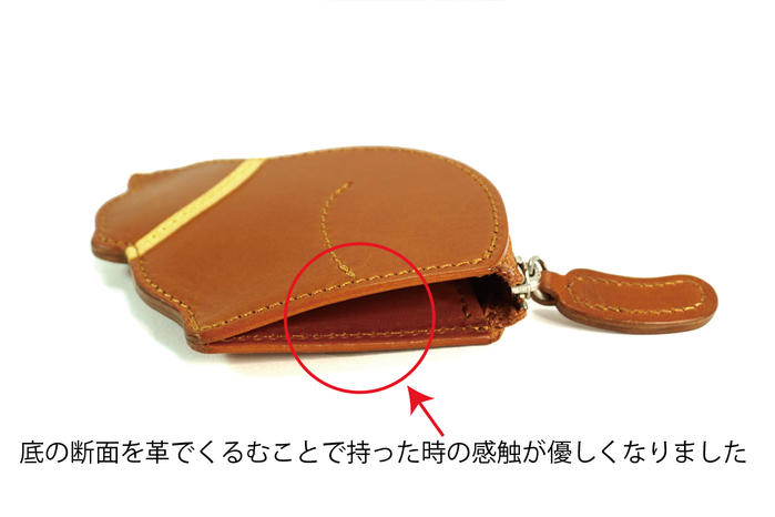 ・底の裁断面を革でくるむことで、持った時の感触が優しくなりました。