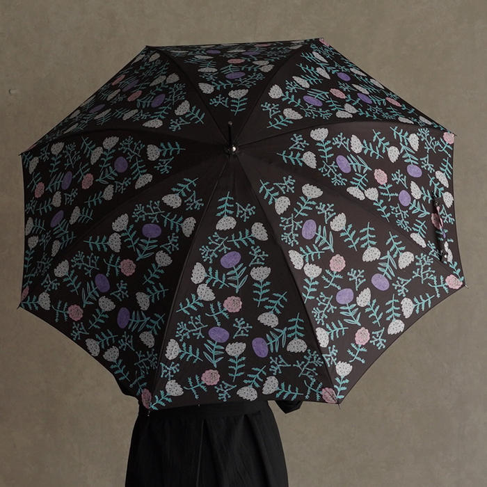 - 竹の傘はZ構造という骨組みになっており、柔軟性があるため風があっても壊れにくくなっています。手描きのイラストをプリントした傘の柄はリネン服などのナチュラルな装いにぴったり!晴雨兼用のため1年中大活躍です。