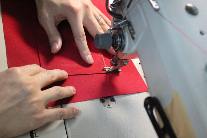 内側ポケットの縫製