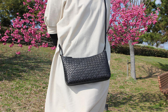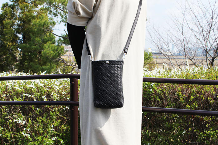 - スマホや長財布などが十分入るサイズでお出かけや旅行の時も大変重宝します。またショルダーの長さは金具をスライドさせるだけで長さ調節可能です。