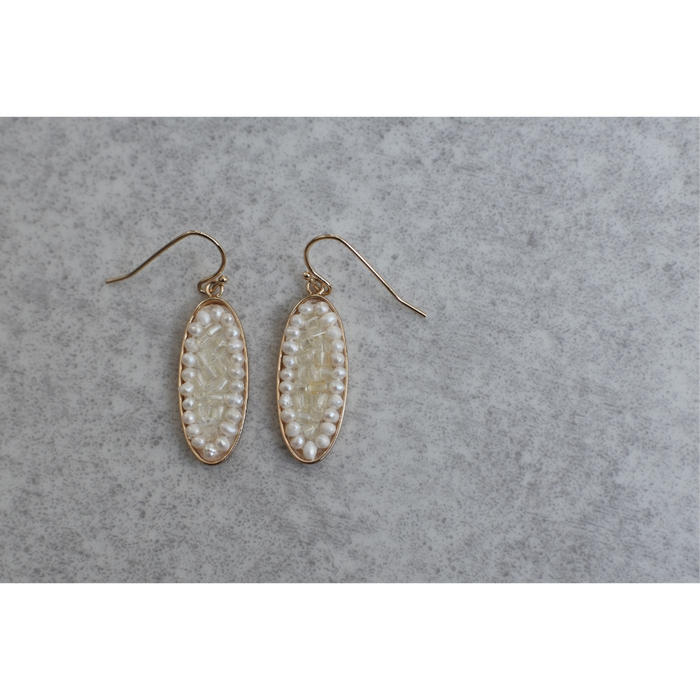 - 透明度の高いイタリアアンティークビーズをちいさな淡水パールで縁取るように