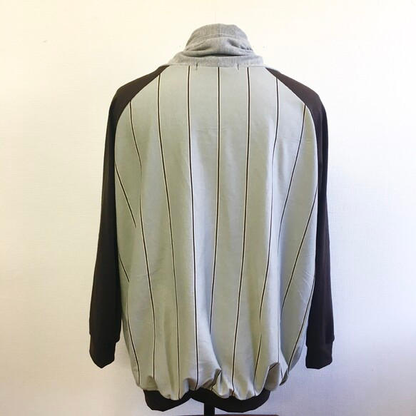 - ガウンのような襟元が特徴のストライプ柄のラグラン袖のカーディガン。素材は薄手のストレッチ素材のコットンカットソーで軽くて着心地良いです♪