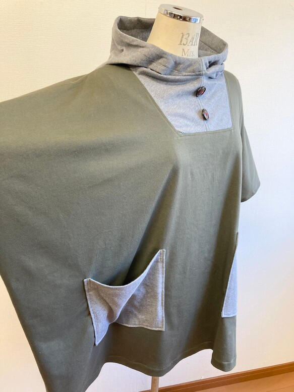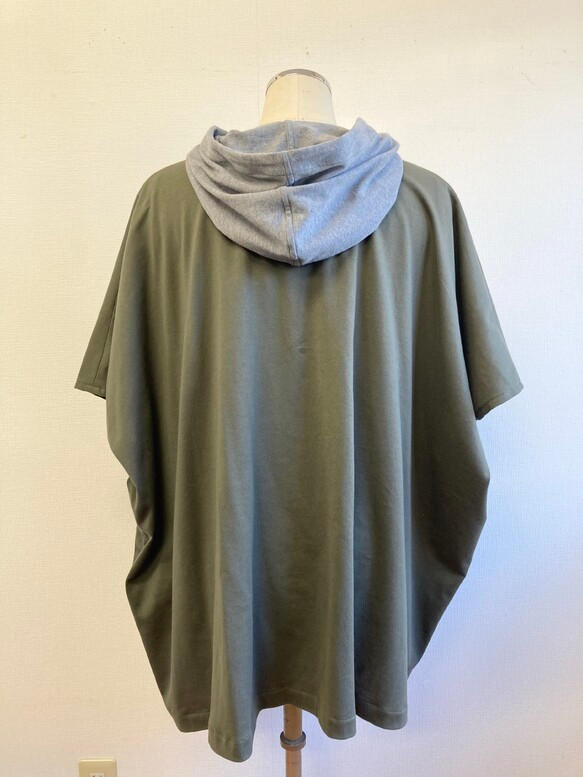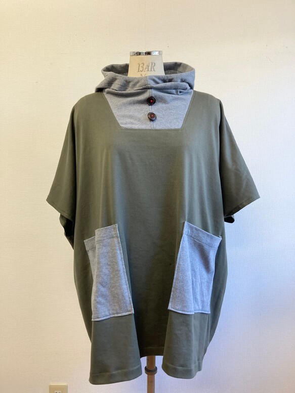 - 男女兼用のビックサイズのポンチョ風5分袖パーカー。