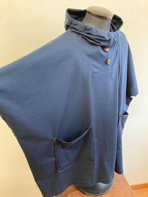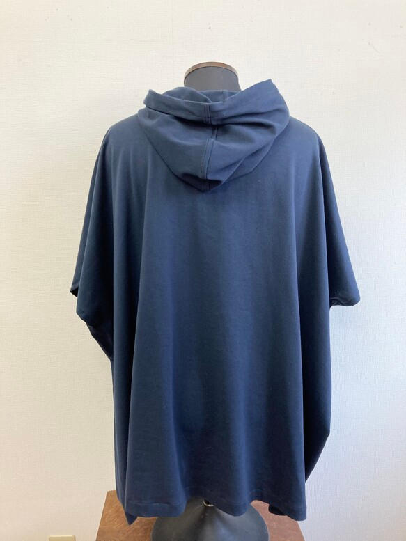 男女兼用❤️カットソー素材のポンチョ風五分袖パーカー(紺)/男女フリー L〜L L/受注生産