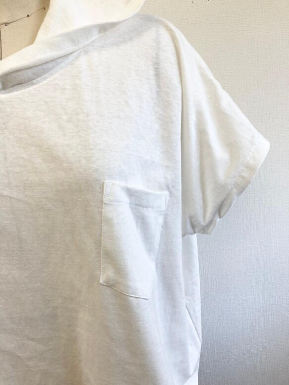 男女兼用❤️パーカーフード付きドルマンBIGTシャツ (白)/男女フリーL〜L L/受注生産