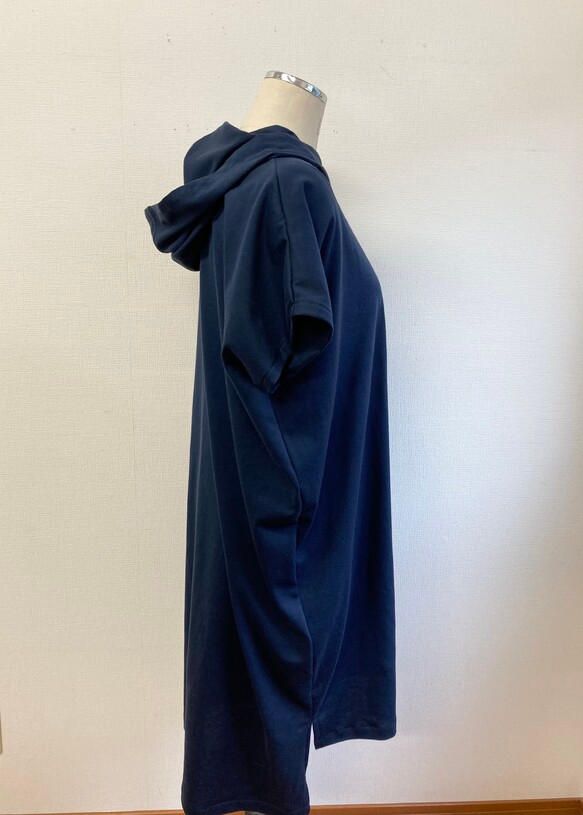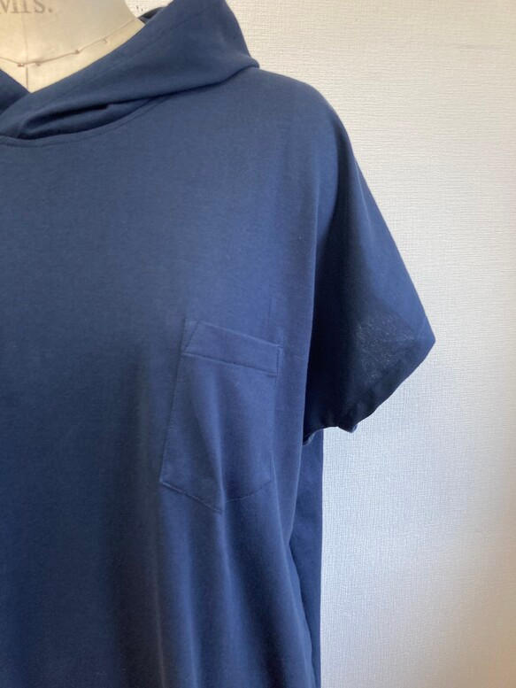 - 男女兼用❤️パーカーフード付きビックTシャツチュニック(紺)/男女フリーL〜L L/受注