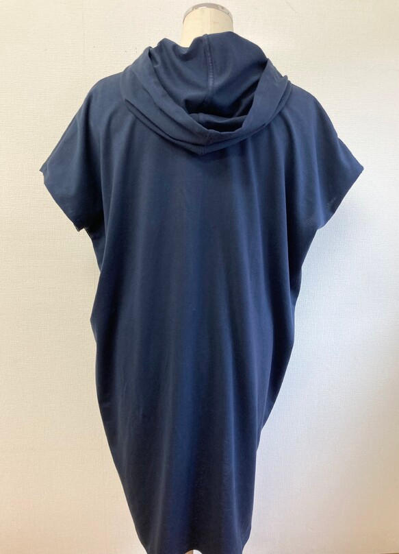 男女兼用❤️パーカーフード付きビックTシャツロング (紺)/男女フリーL〜L L/受注生産
