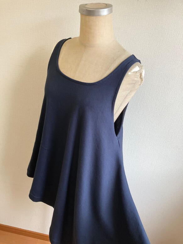 大人スポーティ❤️斜めすそのタンクトップチュニック (紺)/サイズフリーM〜L
