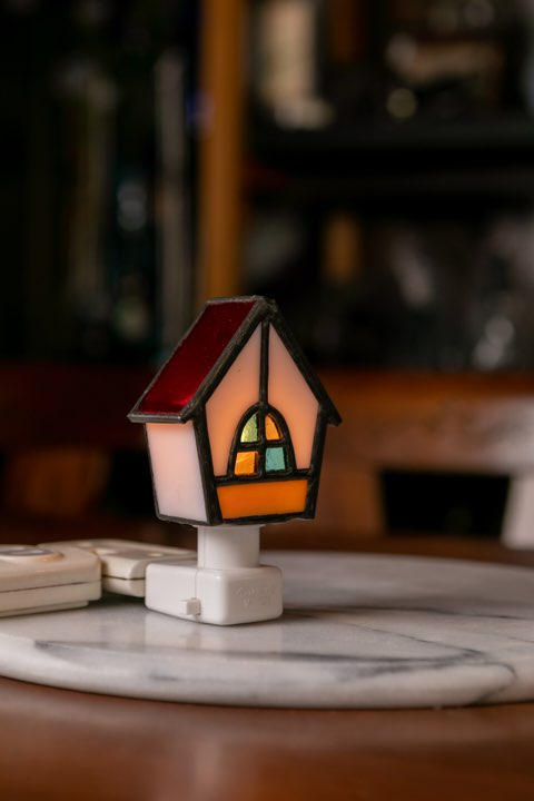付属しているコンセントのスイッチを入れると、様々な模様や色のガラスを通した光が、壁や天井、床、お気に入りの家具などに幻想的に映し出されます。そこはきっとあなたのお気に入りの場所となるでしょう。 -