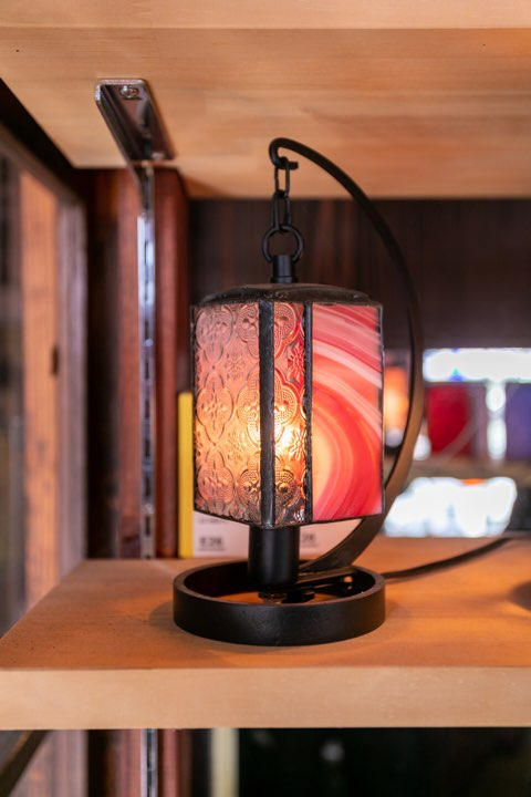オシャレな模様の入った海外製のガラスを組み合わせ半田にて溶接しています。100年以上前からある工法です。