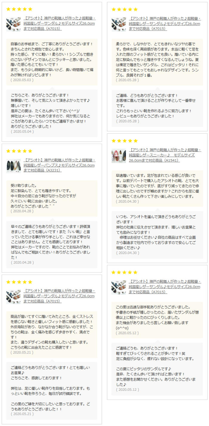 - 弊社の商品について、大変たくさんのお客様の声を頂いています!さまざまなご意見やご感想を頂き、感謝しております!