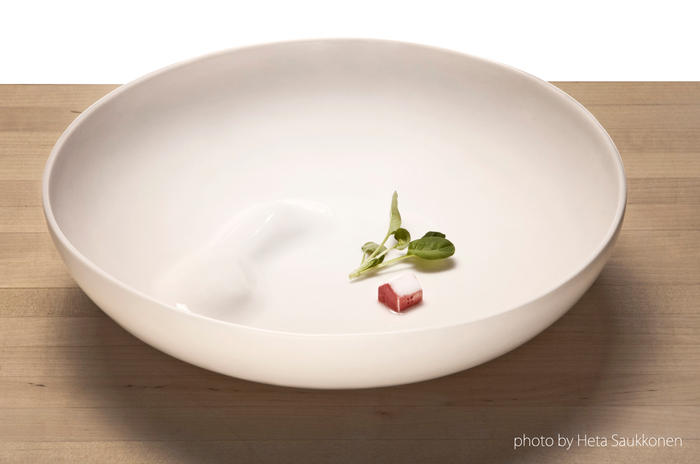 Garden Bowl はフィンランドのランドスケープから生まれました。小さな丘と、屋根に雪が積もった伝統的な赤い家がある雪景色。
