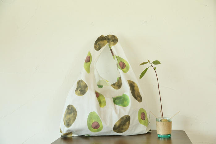 - ●atelier Rippleが今回のプロジェクトに合わせて製作した、総アボカド柄のコットン生地を使用した、レジ袋型エコバッグ!!水彩画タッチで描かれたアボカドが何とも可愛い個性派エコバッグとなりました。フォルムはやや横長型にこだわり、大き目なものは寝かせて入れることができます!付属のポーチに収納可能です☆デリケートモードでの洗濯や、手洗いで衛生的にご使用いただけます☆