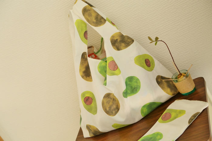 - atelier Rippleが前回のプロジェクトで製作した、総アボカド柄のコットン生地を使用した、レジ袋型エコバッグ!!水彩画タッチで描かれたアボカドが何とも可愛い個性派エコバッグです。フォルムはやや横長型にこだわり、大き目なものは寝かせて入れることができます!付属のポーチに収納可能です☆デリケートモードでの洗濯や、手洗いで衛生的にご使用いただけます☆