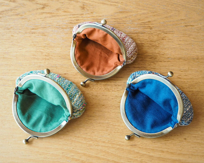 - 春のミックスツイード調手織り布を使ってがま口作りました。プクッとしたかわいい形で生地は柔らかく、小銭を入れるのに丁度良いサイズです。