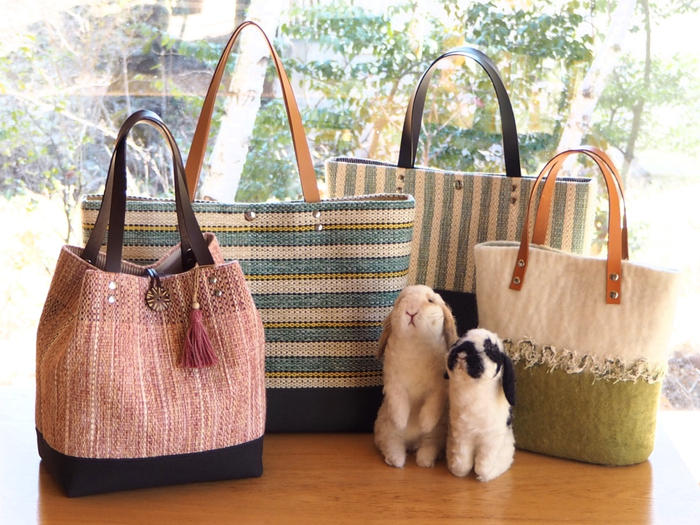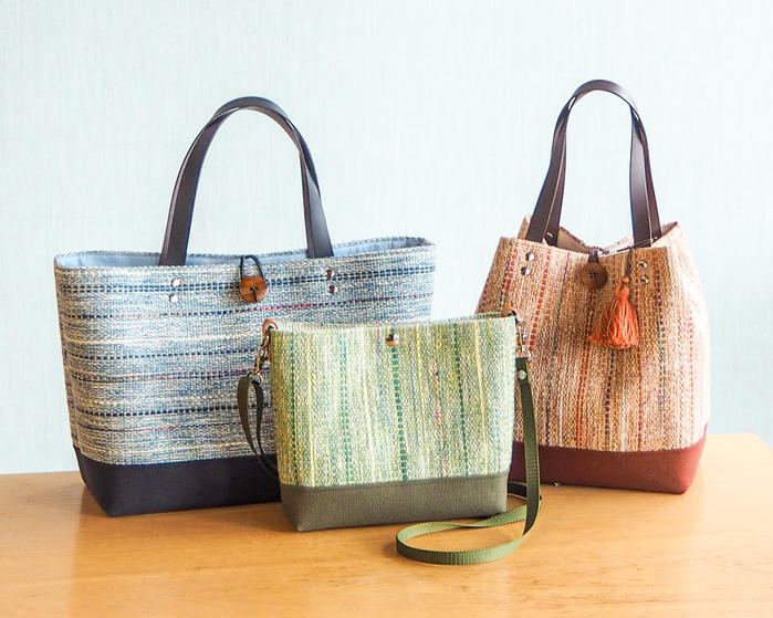 - 趣味で始めた手織り、織ることが楽しくて溜まる一方の布を何かに使えないかと思って作ったバッグを持ち歩いていた時、「素敵なバッグですね。」と見知らぬ人や知り合いに褒められたことから本格的にバッグ制作を始めました。工業デザイナーの経験を生かし、色の組み合わせや全体のバランスを大切に、日々の暮らしの中で役に立つちょっとこだわりのある、バッグや小物などオリジナル作品を作っています。