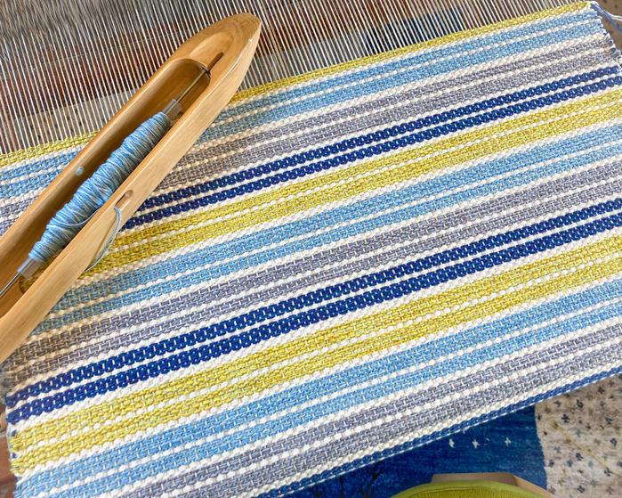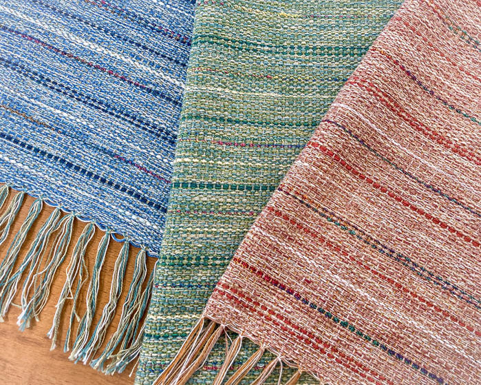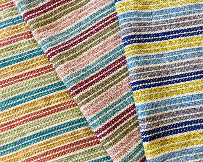 - 今回のプロジェクトでは、春らしい雰囲気の2パターンの柄(各3色)の布を織りました。