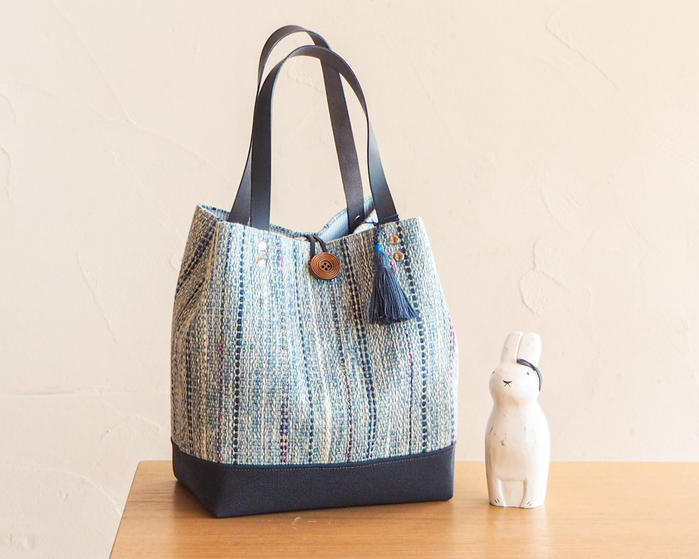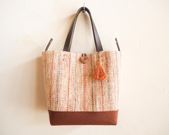 - 春のミックスツイード調手織り布を横使いにした横長のトートバッグで、手織りの風合いをお楽しみいただけます。マチがやや広めで出し入れもしやすく、ショッピングやちょっとしたお出かけ用バッグとして使い勝手の良いバッグです。