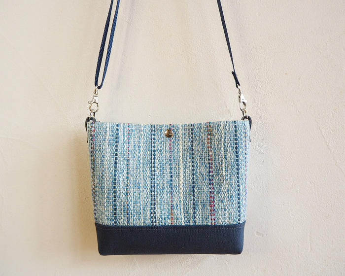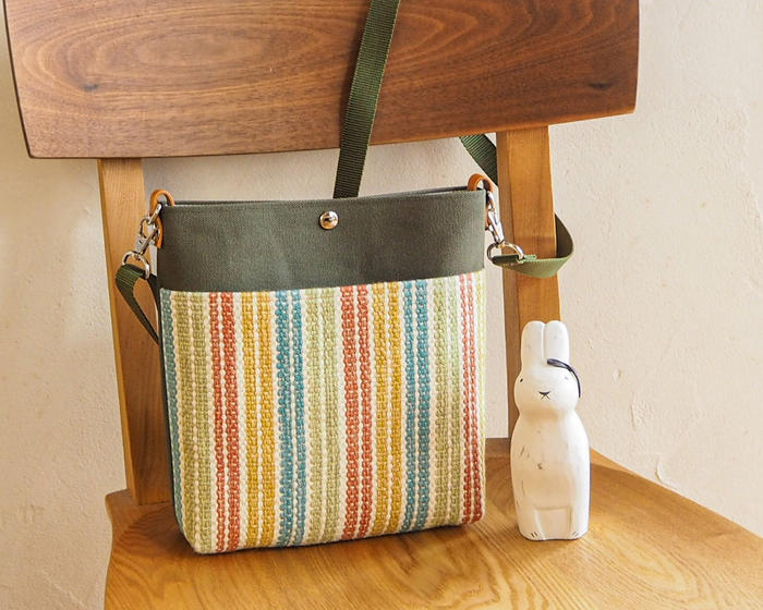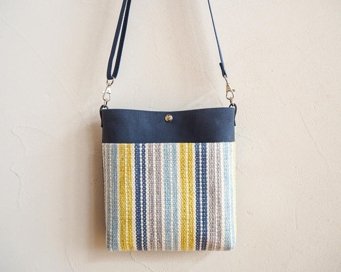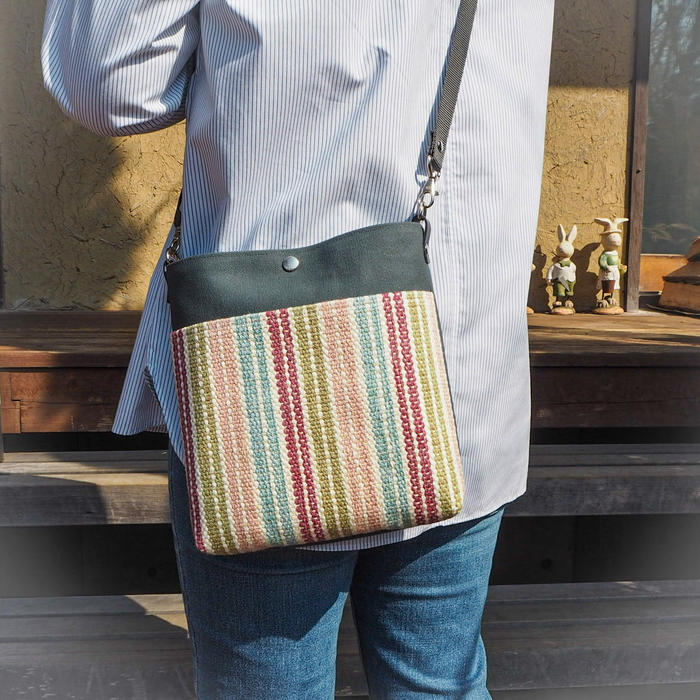 - 春のマルチボーダー柄の手織り布を使ったミニショルダーバッグです。大きなポケット付きで、お散歩用やサブバッグとしても手軽に使えるデザインです。スマホやお財布などだけを身軽に持ち歩くのに便利な大きさ、マチ付きで長財布や多少厚みのあるものでもすっきりと収まります。