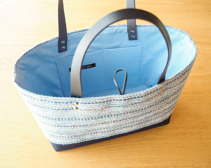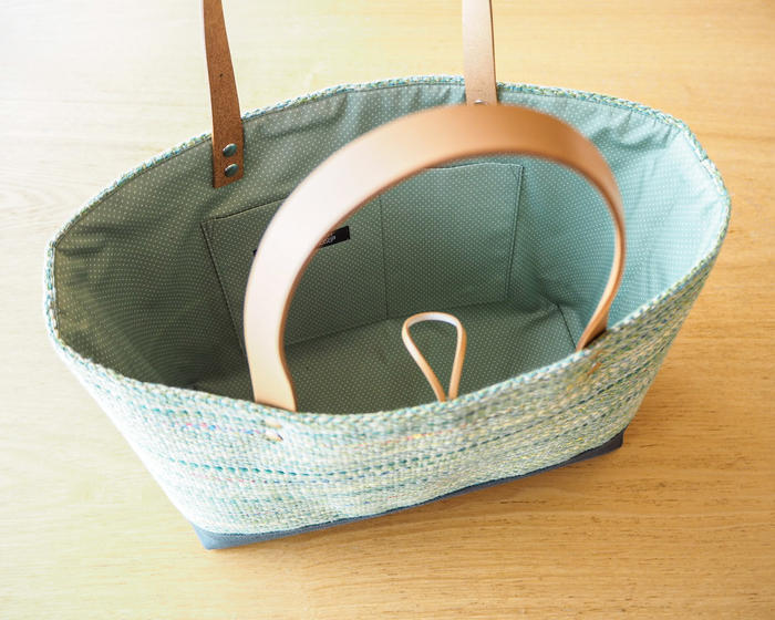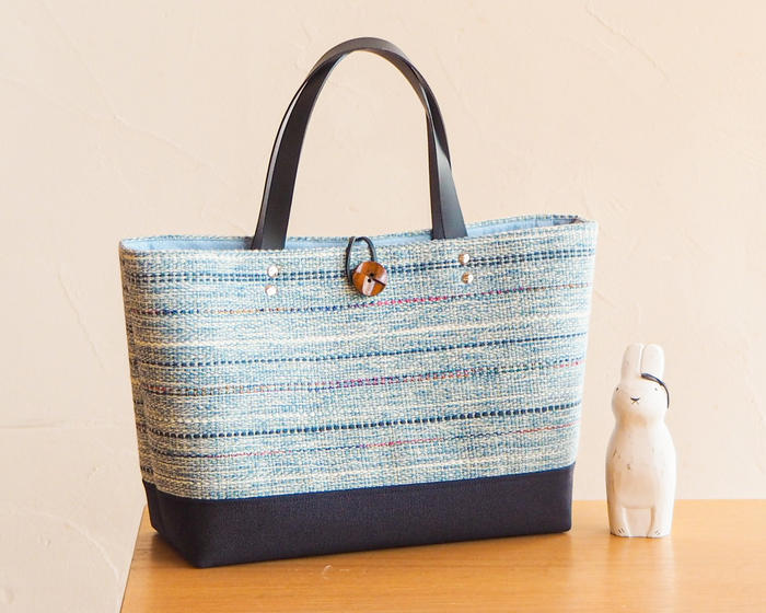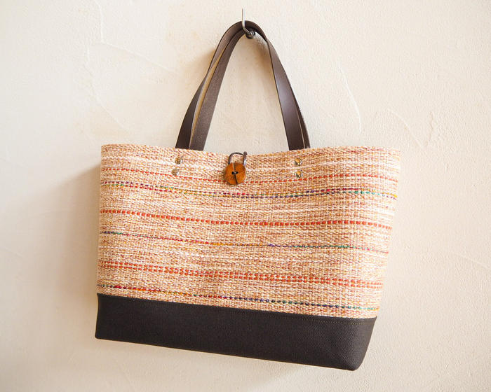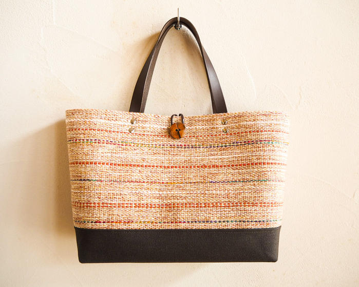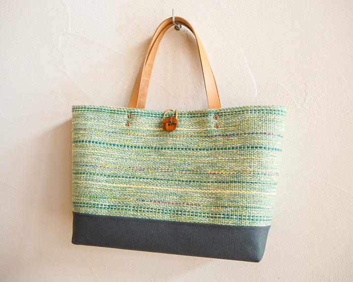 - 春のミックスツイード調手織り布を横使いにした横長のトートバッグです。マチがやや広めで出し入れもしやすく、ショッピングやちょっとしたお出かけ用バッグとして使い勝手の良いバッグです。
