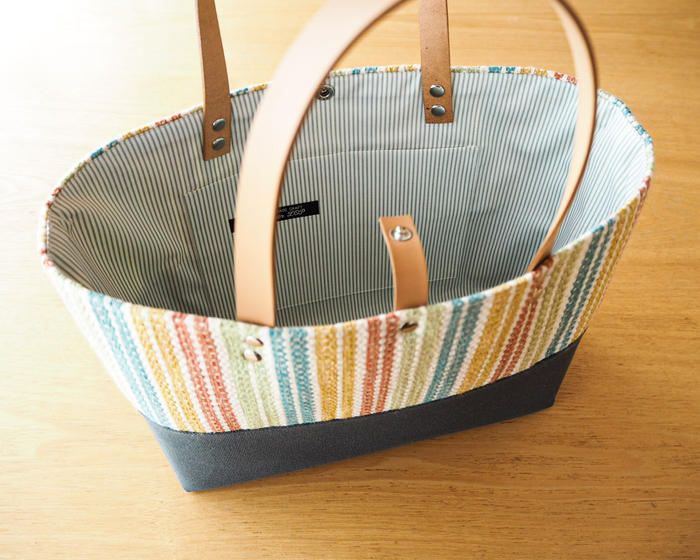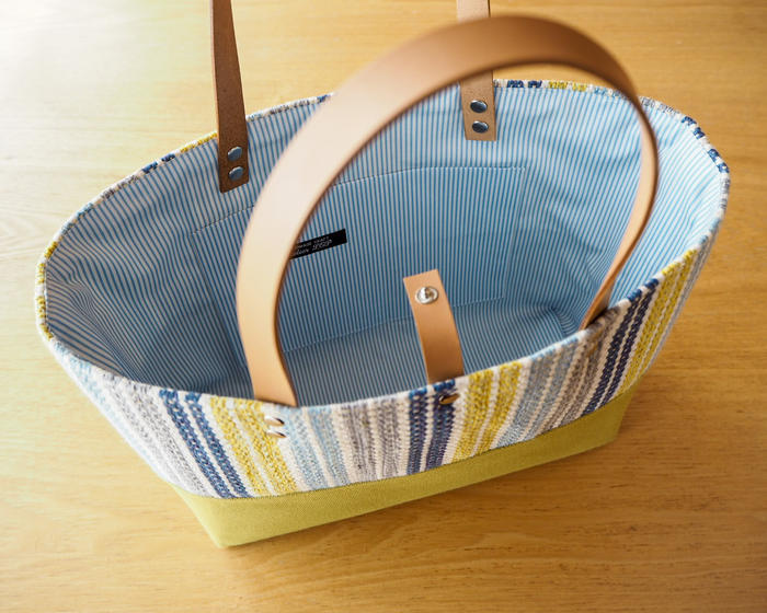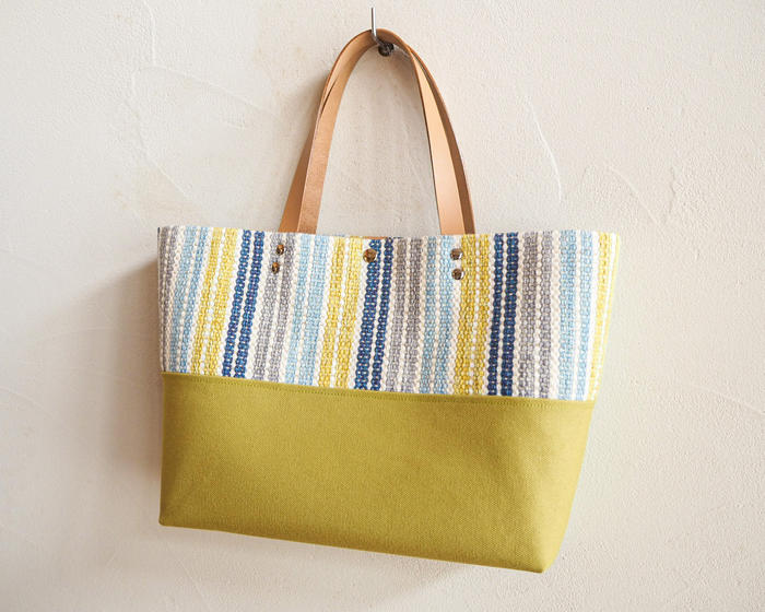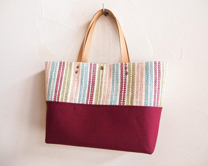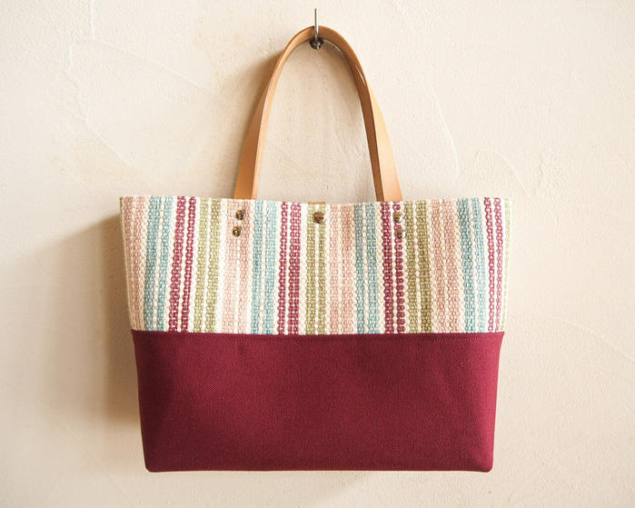 - 春のマルチボーダー柄の手織り布と帆布を半々に合わせたスッキリ横長型のトートバッグです。合わせる帆布の色でイメージも変わります。ショッピングやちょっとしたお出かけ用バッグとして使い勝手の良いサイズです。