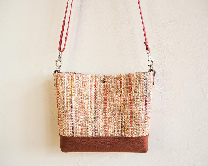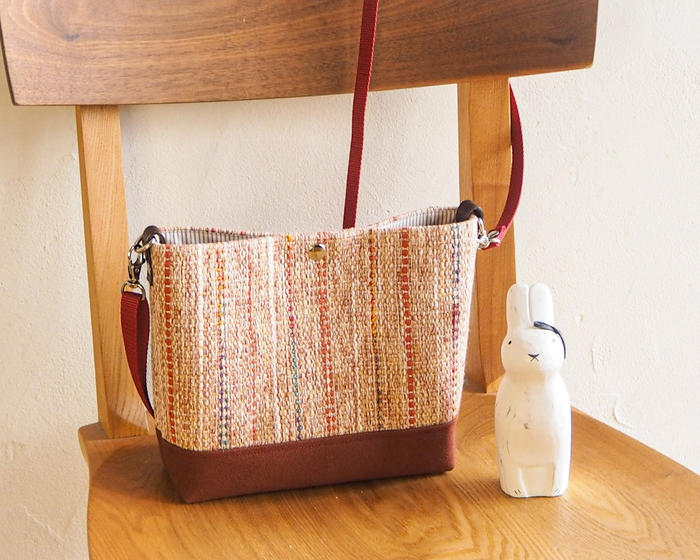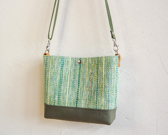 - 春のミックスツイード調手織り布を使ったかわいい形のポシェットです。お散歩用やサブバッグとしても手軽に使え、ミニマムな持ち物をコンパクトに持ち歩くのに便利なデザインです。