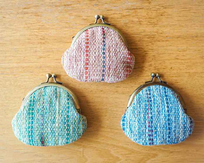 - 春のミックスツイード調手織り布を使ってがま口作りました。プクッとしたかわいい形で生地は柔らかく、小銭を入れるのに丁度良いサイズです。