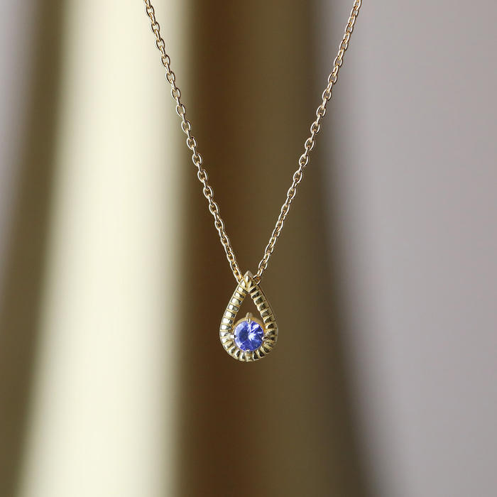 - ティアドロップ(しずく)型のフレームに、ファセットカットの天然石をセットしました。