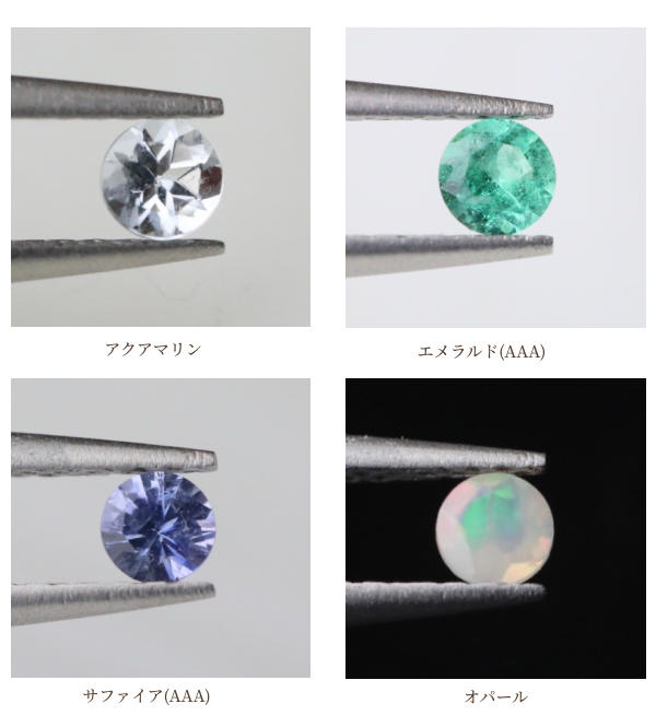 こちらの注文ページでは【 アクアマリン・エメラルド・サファイア・オパール】をお選びいただけます。