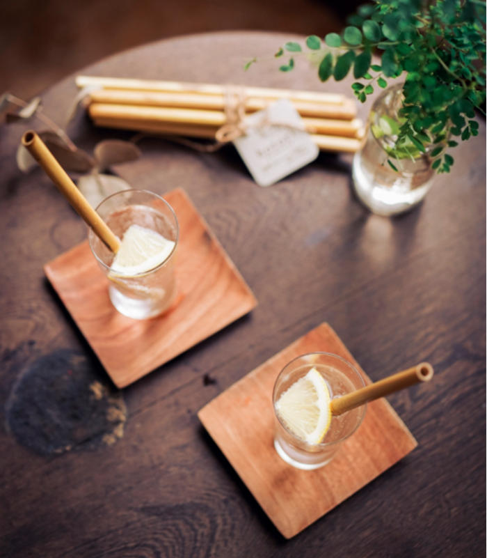 - 環境に配慮した竹製エコストロー(バンブーストロー)。