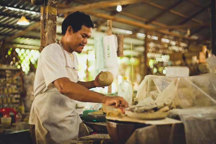 地元の良質な土を使い、地元の職人たちが、足蹴り轆轤で丁寧な仕事を行っていす。