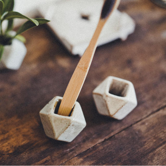 陶器の歯ブラシホルダー2個セット(幾何学)+心を込めたお礼メール