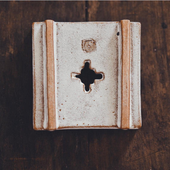- シンプルなクロスのモチーフが中心にデザインされた石鹸置き。