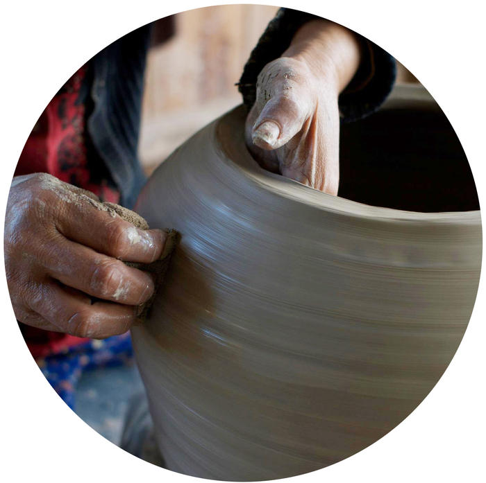 地元の良質な土を使い、地元の職人たちが、足蹴り轆轤で丁寧な仕事を行っていす。