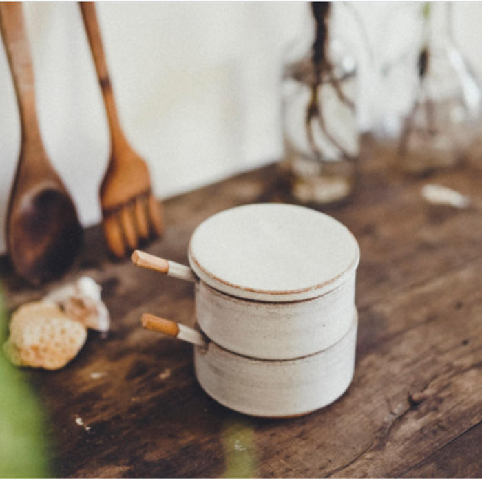- シンプルで使いやすい、陶器の二層式スパイスケース。