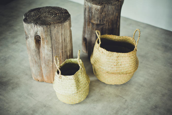 - 水草で丁寧に編み込まれた筒型籠バック 大小セット。