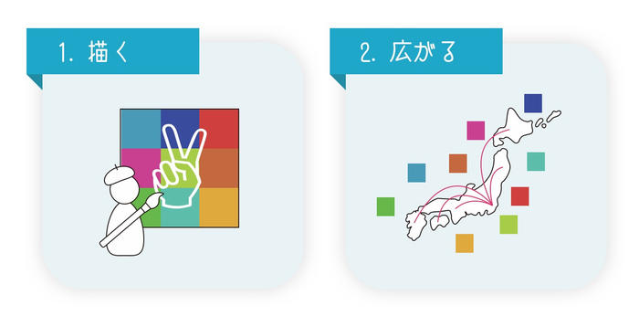 - 25枚に分かれる1つの大きな絵を元に、その1枚1枚をPIECE(かけら)として所有してもらい、日本全国にPEACE(平和)の祈りを散りばめようという試みです!