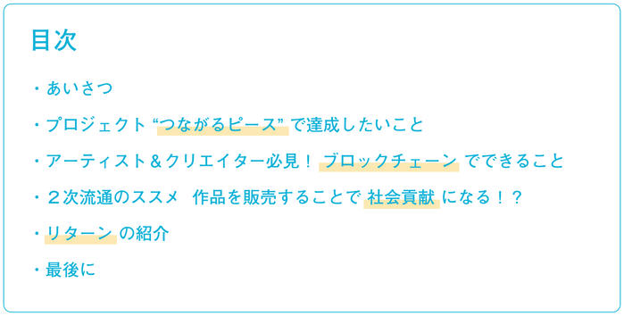 最後は、ブロックチェーンを使うことで、新しいアートのあり方を広めていきたいと思っています。