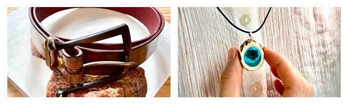 坂東工制作のオリジナル1点物!【鹿の角と石のペンダント】【革製ベルト】