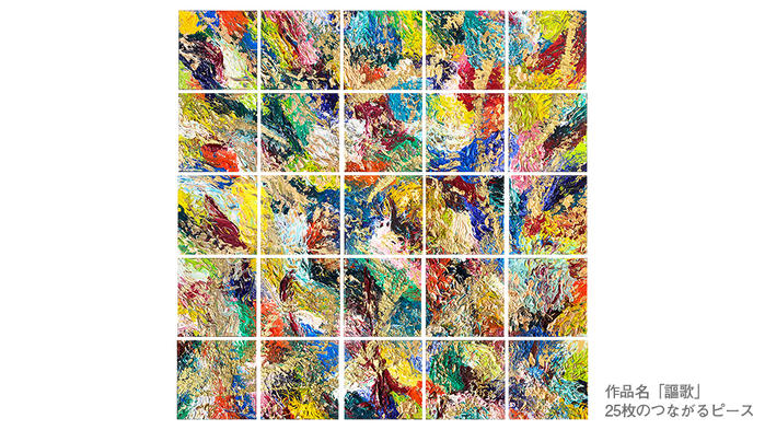 25ピースに分けることができる、一つの絵(作品タイトル「謳歌」)を制作しました。