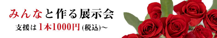 - 今回はその花を僕の一番好きな花「赤いバラ」に指定させていただき、メッセージも添えて送っていただきたいと思っております。それらの赤いバラとメッセージを展示会場に飾らせていただきます。