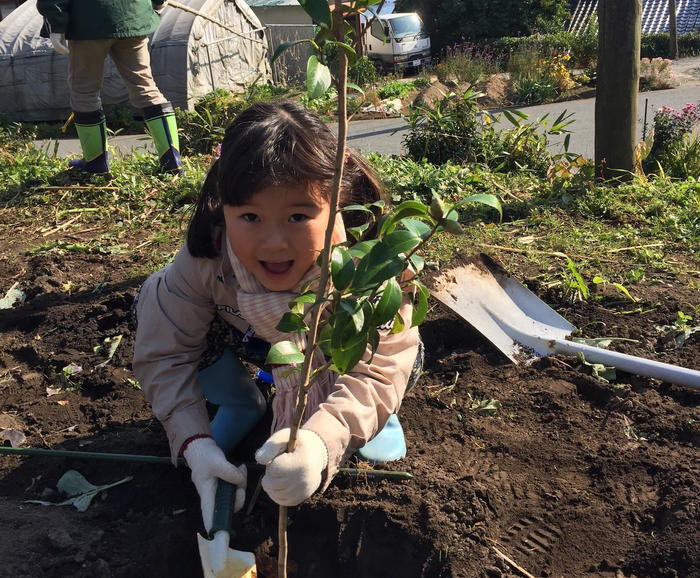 ー椿苗木を一本植える