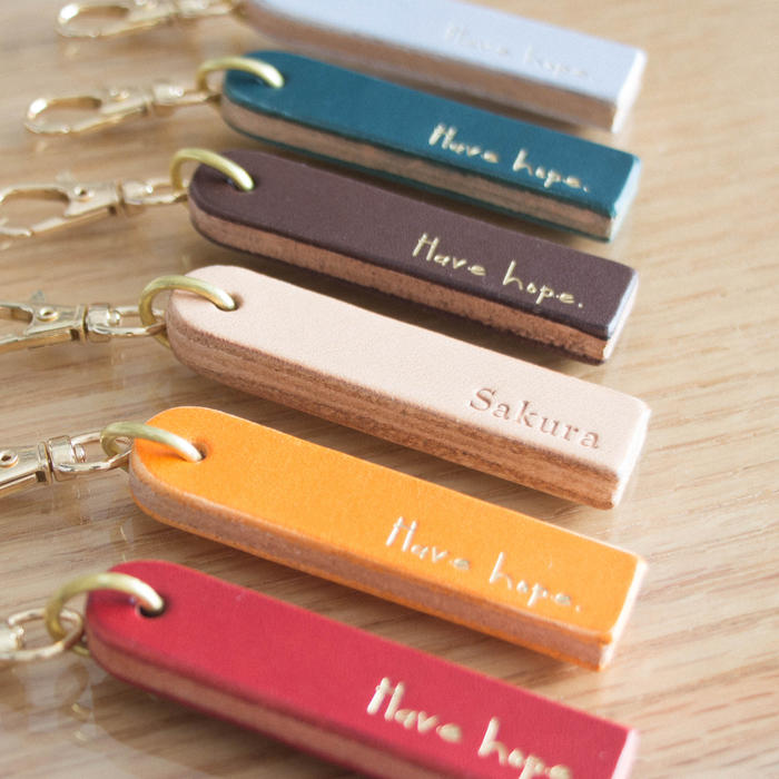 - 「心をひとつに感染対策を頑張ろう」という想いを込めて、カルムレザー オリジナルフォントで金箔の刻印「Have hope.(希望を持とう)」を全てのリターン品にお入れします。