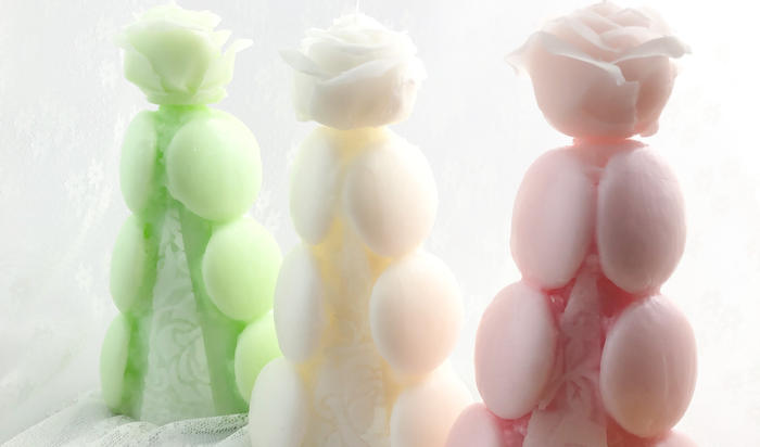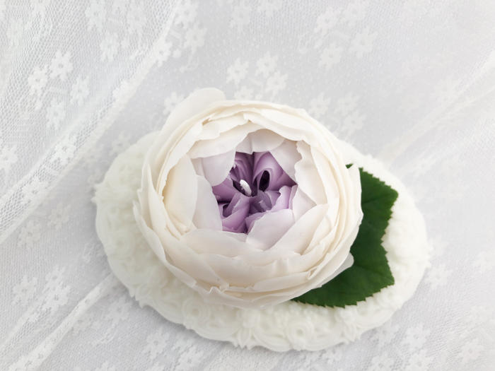 - フラワーキャンドルはミツロウです。繊細なローズレースをあしらいました。