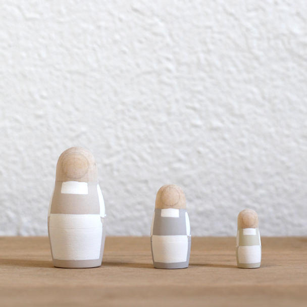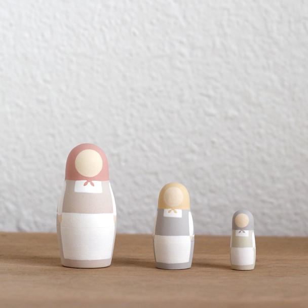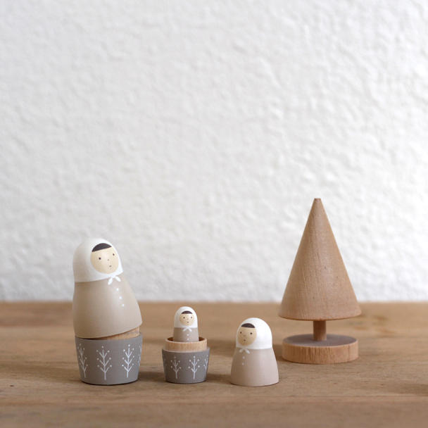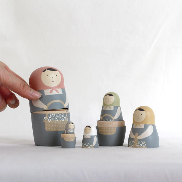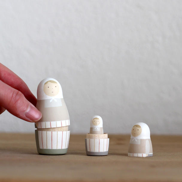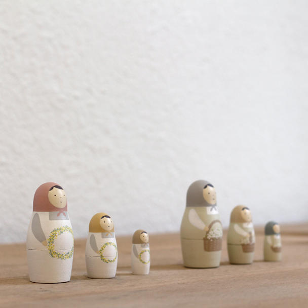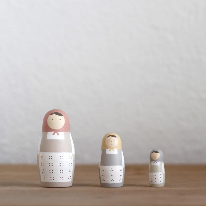 - クリスマスマーケットに行ったときに入れ子のマトリョーシカに出会い、大きさによって色や模様がちがうところにときめきました。