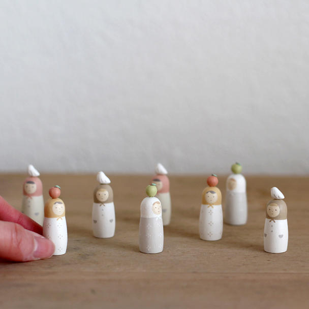 ・マトリョーシカは天然木を手作業で削って作られているため、サイズや形には多少のちがいがあります。