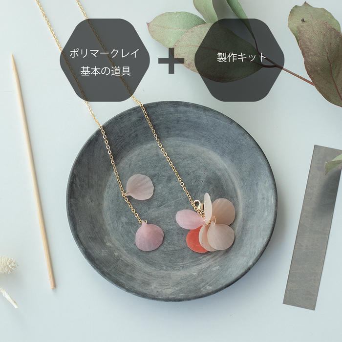 「ポリマークレイ基本道具セット」+ 花びらピアスorイヤリングキット